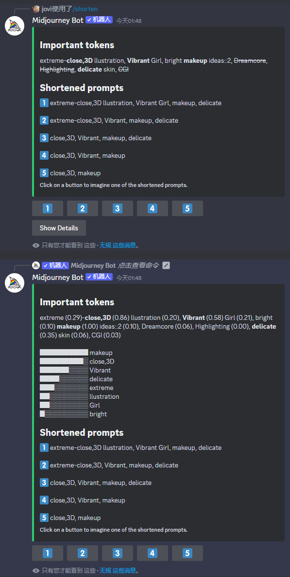 這個命令可以讓你“分析”一個提示,獲取可能無效的詞匯建議以及可能關(guān)鍵的詞匯。