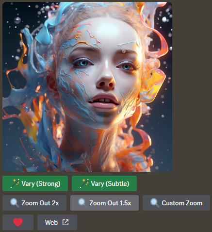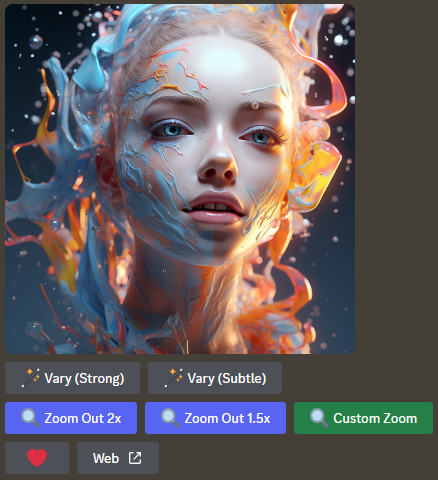 [自定義視角擴大](高級功能)可以彈出一個文本框,讓你在視角擴大的同時更改提示、縱橫比或精確的放大倍數(shù)。要改變縱橫比,請設(shè)定 --zoom 1,然后將 --ar 修改為你想要的目標(biāo)。這個選項會嘗試移除你之前圖像上的黑邊。