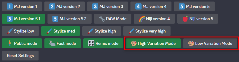 若要切換此模式,請輸入 /settings 并點擊另一種變異模式。