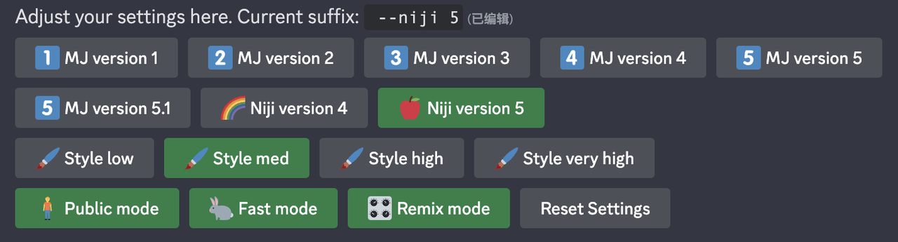 使用/settings 并從菜單中選擇版本:?? Niji Version 5
