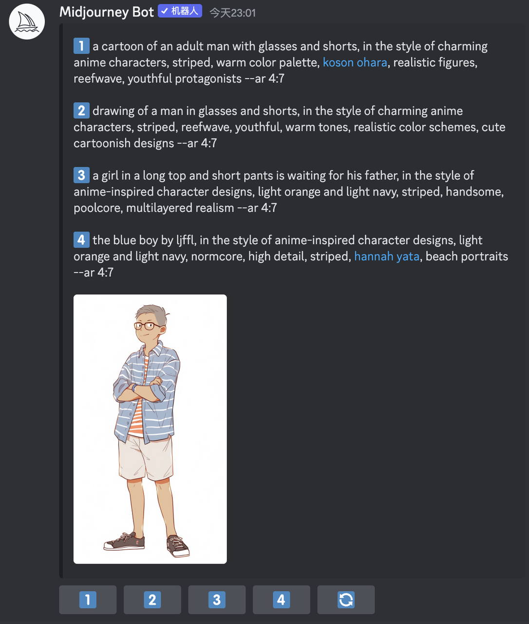 4:文生圖:墊圖使用參考圖獲取的URL+生成的圖像文本提示(選擇其一)+(參數)--iw 2 --ar 4:7