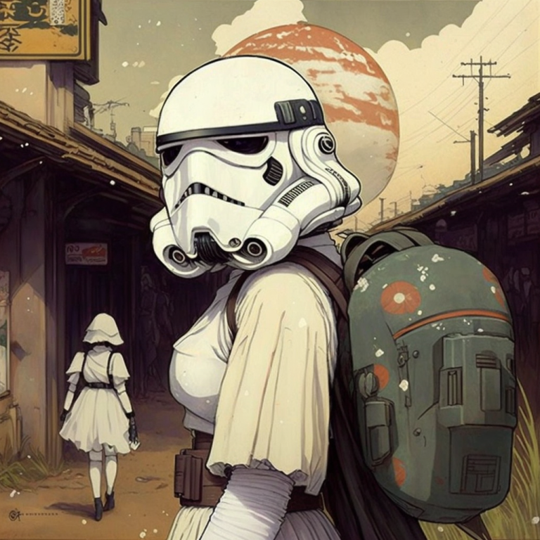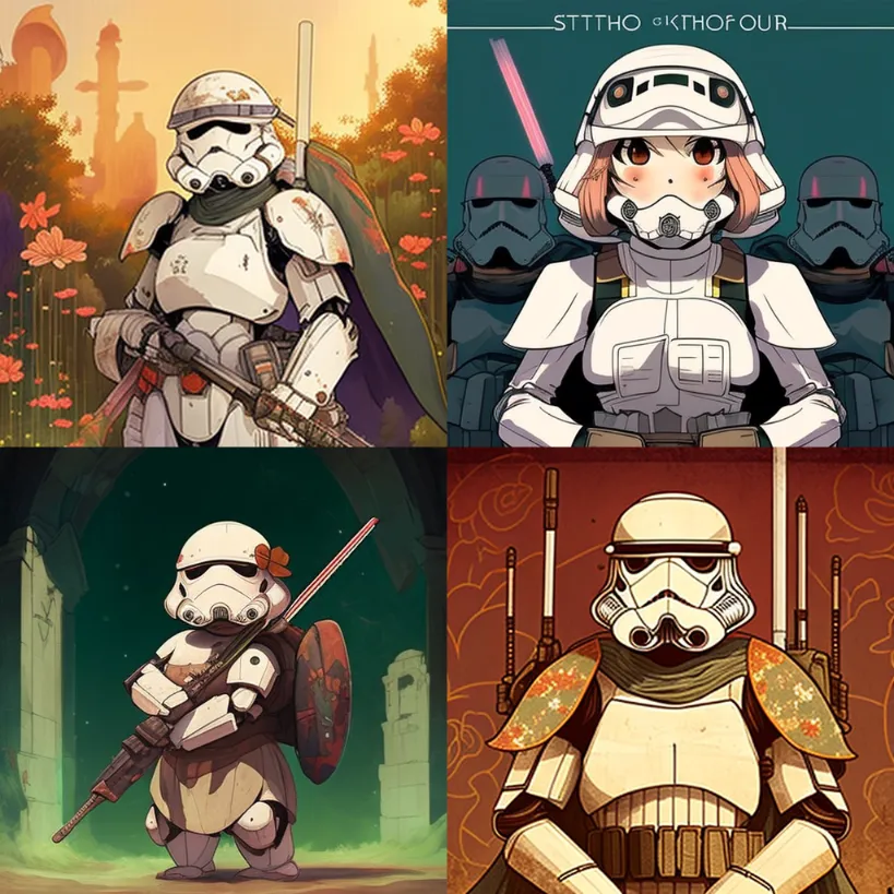anime by studio ghibli::1.4 stormtrooper::1.2 | anime by studio ghibli::1.5 stormtrooper::1 |