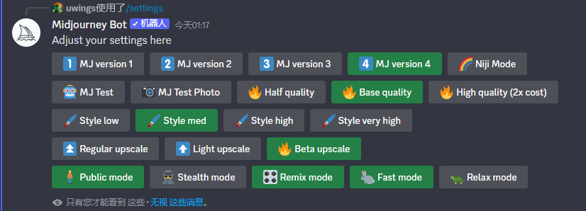 查看并調(diào)整 Midjourney Bot 的設(shè)置