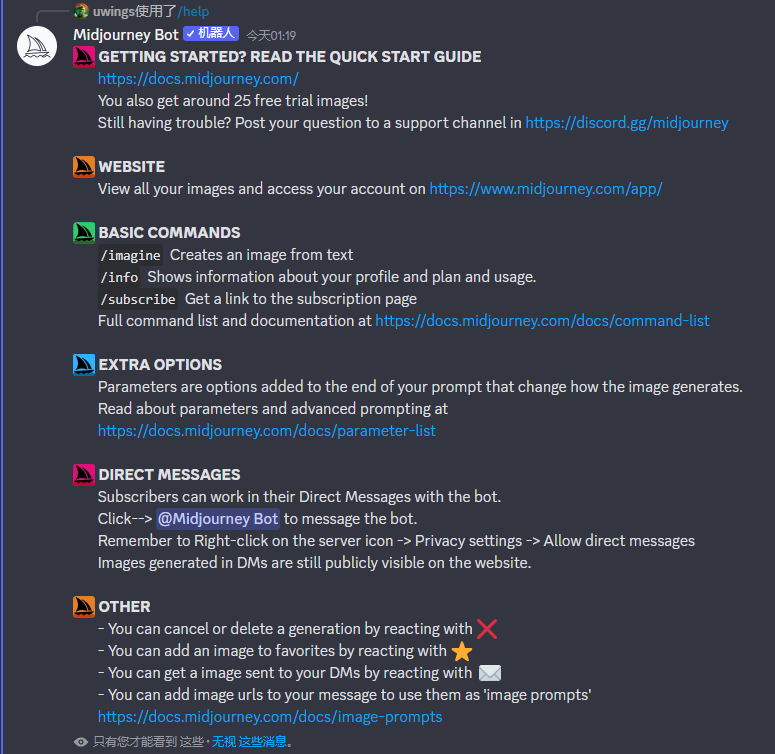 完整的命令列表和文檔請(qǐng)查閱 https://docs.midjourney.com/docs/command-list
