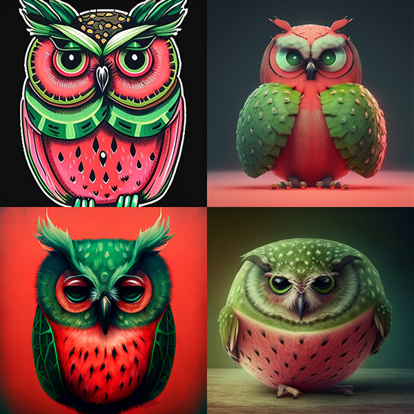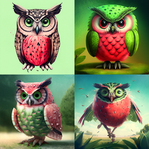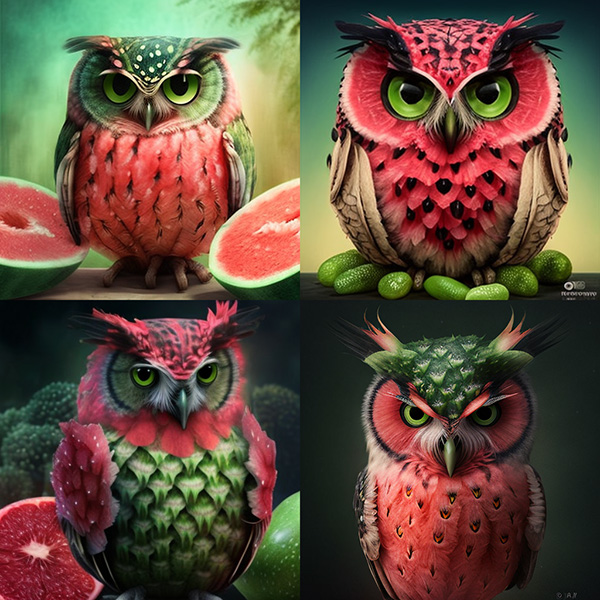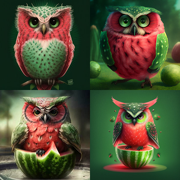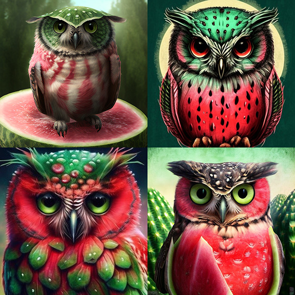 prompt 示例: imagine/ prompt watermelon owl hybrid